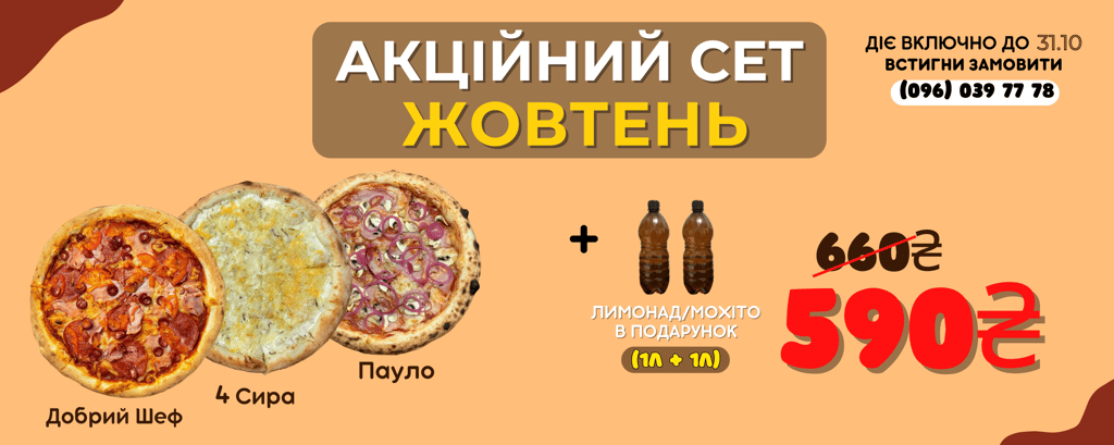 Добрий Шеф, 4 Сира, Пауло (32 см - 1540г)+ 2л мохіто / лимонад в подарунок